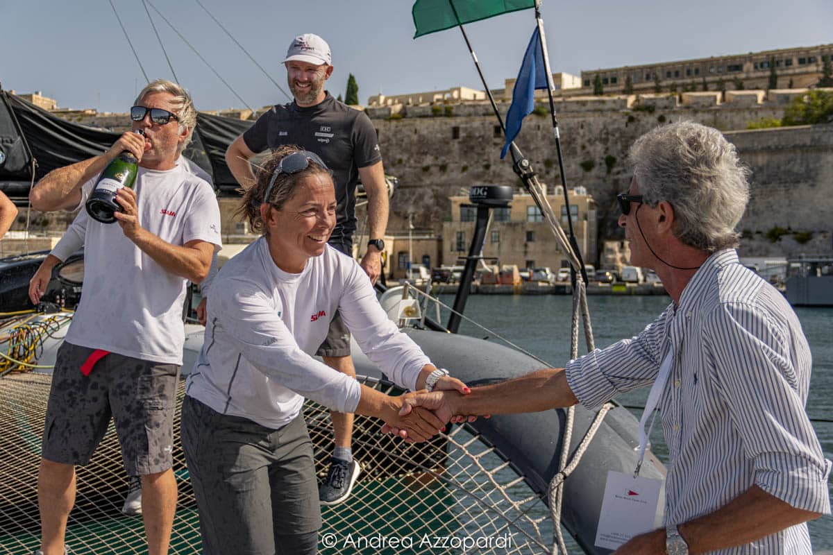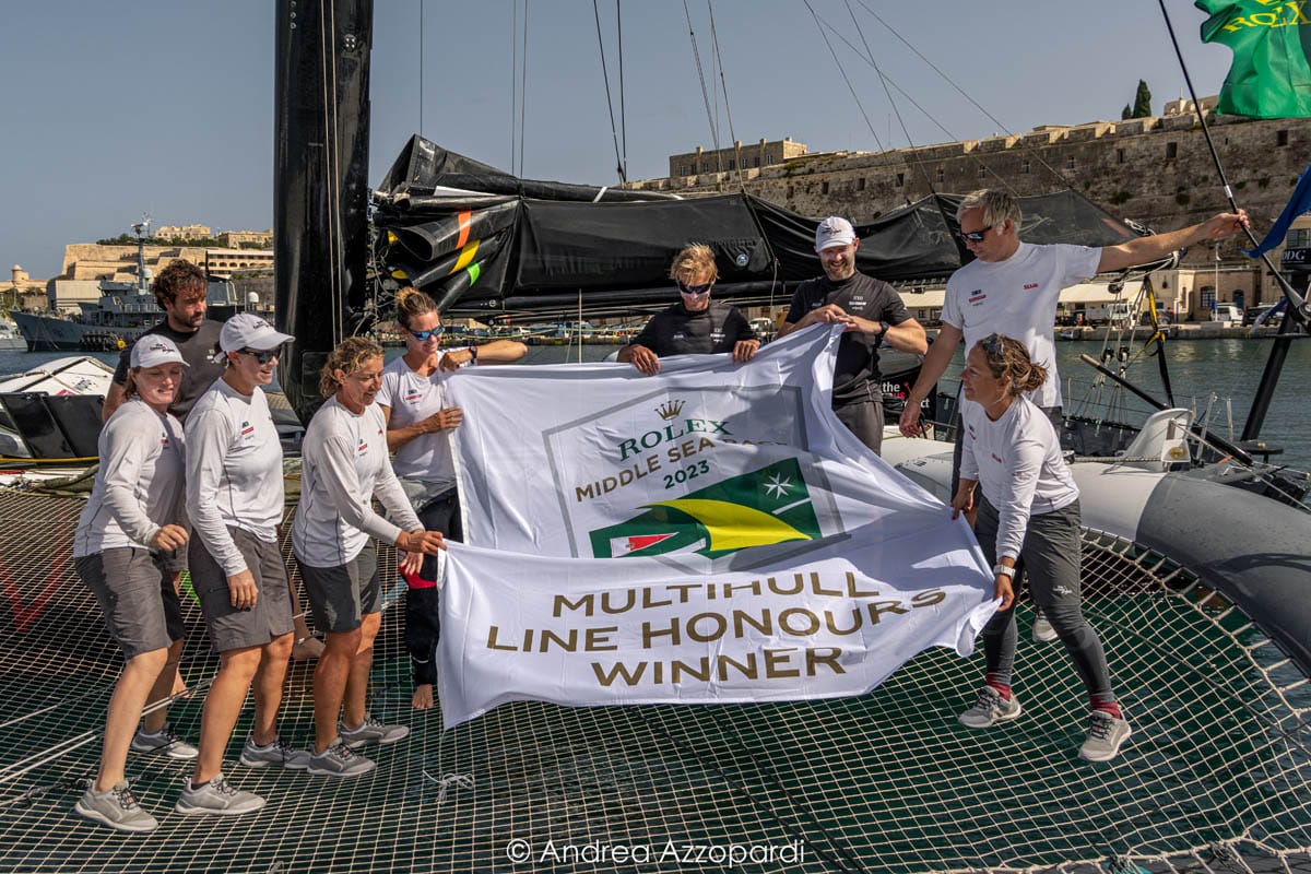 Alexia Barrier’s MOD70 Limosa (FRA) crossed the finish line of the 2023 Rolex Middle Sea Race at 13:10:42 CEST on Monday 23 October to take Multihull Line Honours in an elapsed time of 2 days 2 hours 10 minutes 42 seconds.